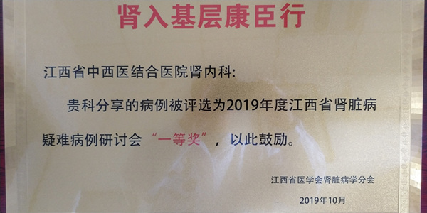 10月25-27日,江西省医学会肾脏病分会第16次学术年会暨江西省血液净化秋季论坛在萍乡市举行,会上,我院肾内科分享的病例获江西省肾脏病疑难病例研讨会一等奖,熊斯璐医生撰写的病例获江西省医学会肾脏病分会肾入基层疑难病例研讨会优秀病例奖,为医院争得了荣誉。